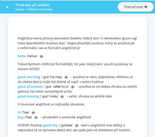 Slovíčka a příkladové věty v nich jsou doplněny zvukovými nahrávkami a probranou látku si můžete mnohdy ihned vyzkoušet v interaktivních cvičeních, testech, kvízech, drilech apod.