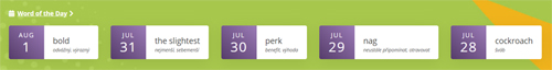 Slovíčka dne vycházejí ve dvou verzích – verze Classic, která je určena pro středně pokročilé a pokročilé studenty, a verze Basic, určená pro začátečníky. Pokud máte v aplikaci nastavenou úroveň Starter (A0) nebo Elementary (A1), bude se vám zde automaticky zobrazovat Word of the Day BASIC. Pokud máte nastavenou vyšší úroveň, bude se zde zobrazovat Word of the Day CLASSIC.