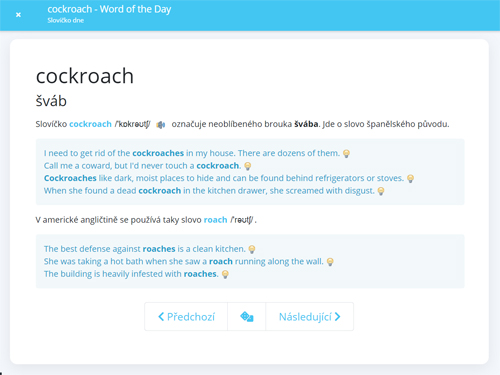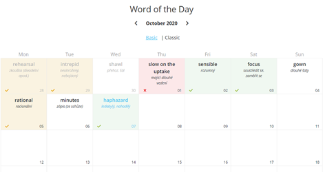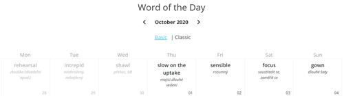 V kalendáři Word of the Day lze přepínat mezi verzemi CLASSIC a BASIC, takže si všichni mohou přečíst obě slovíčka pro daný den.